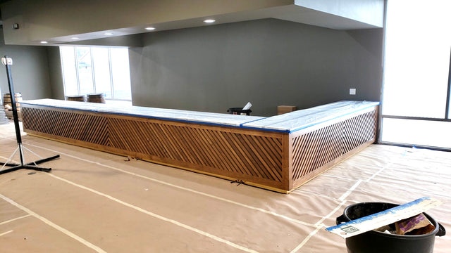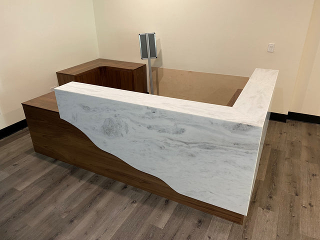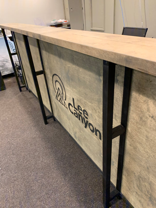 We can help you impress your clients and communicate your brand with custom reception counters, built-ins, tables, accent walls, and signage.
